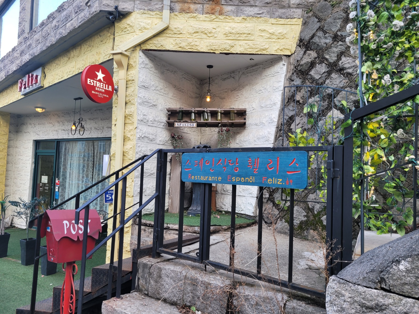 ํ์๋ฌธ ์์๋ ๋นจ๊ฐ ๊ณ๋จ์ด ๋๋ณด์ด๋ ์คํ์ธ์๋น๋ ์์ด์.